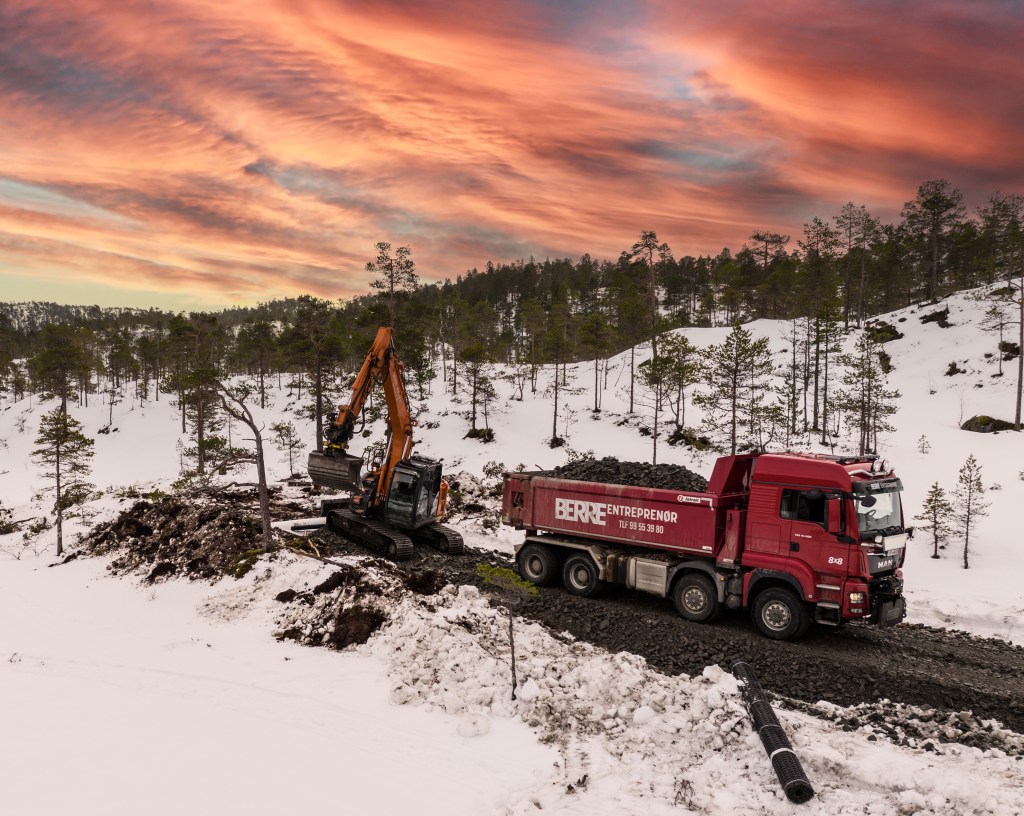 Berre Entreprenør er et veldrevet firma i Namsos som har spesialisert seg innen graving, grunnarbeid, massetransport og flytting av maskiner. Vi har et kontinuerlig fokus på kvalitet og sikkerhet, og moderniserer maskinparken i takt med utviklingen. Slik ivaretas de ansattes sikkerhet og kundenes krav til effektivitet og kvalitet. Bedriften teller ni ansatte med lang fartstid i bransjen. De legger sin stolthet i å gjøre deg som oppdragsgiver fornøyd. Berre Entreprenør er godkjent lærebedrift og har sentral godkjenning tiltaksklasse 2.
