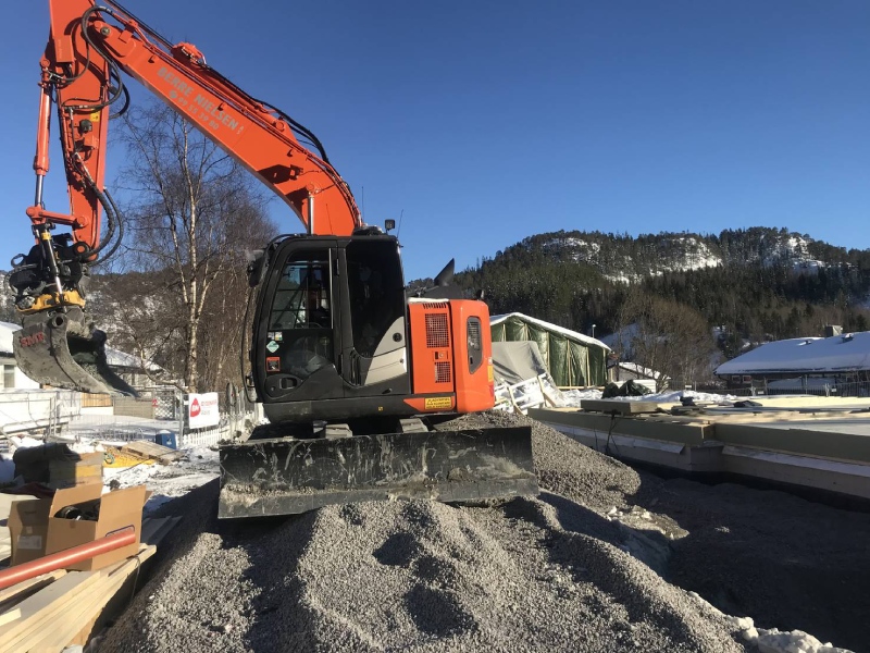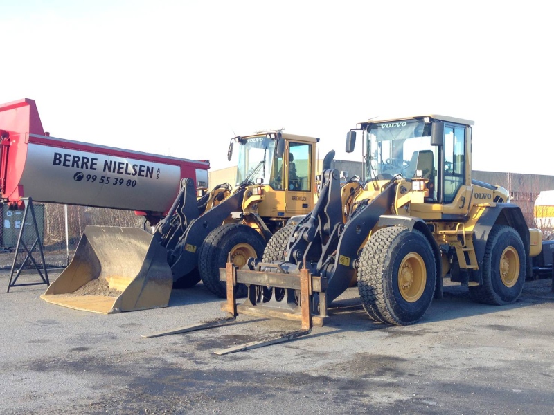 Vi har to hjullastere med skuffer, pallegaffel, hydraulisk kost og snøbrøyteutstyr.